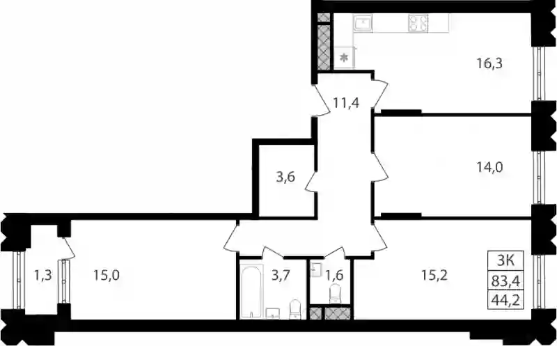 24 173 512 ₽3-к.квартира, 78.9 м², 16 эт.
