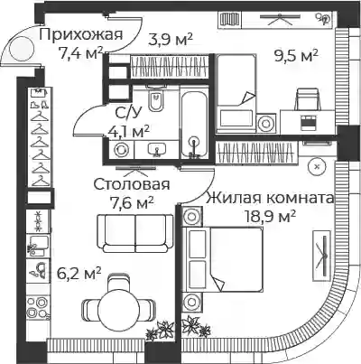 21 031 550 ₽2-к.квартира, 54.5 м², 18 эт.