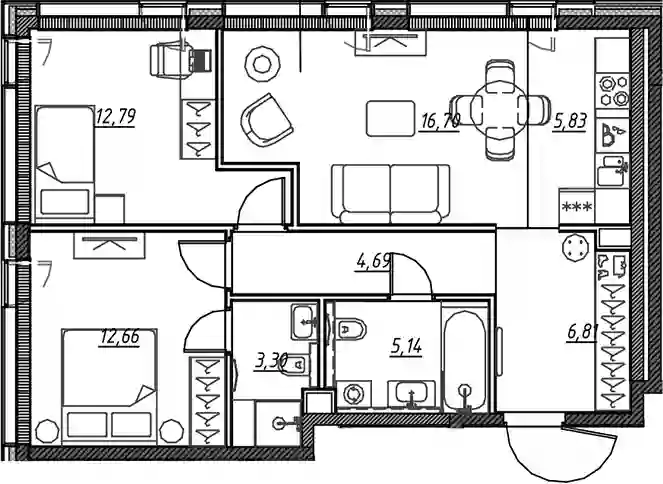 Квартиры в ЖК представлены классическими планировками от студий до трёхкомнатных. Есть возможность выбрать квартиру без отделки, с подчистовой и чистовой отделкой.