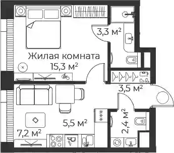 19 132 480 ₽2-к.квартира, 35.2 м², 3 эт.