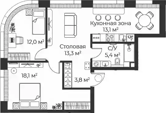 В комплексе предложено множество планировочных решений: в наличии квартиры, как классического типа, так и европланировки. Квартиры сдаются с подчистовой отделкой, высотой потолков 3 м и панорамным остеклением в пол.