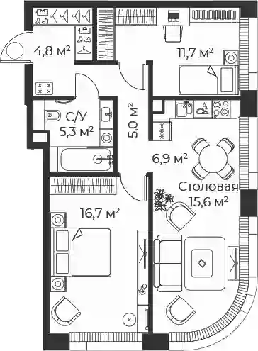 В комплексе предложено множество планировочных решений: в наличии квартиры, как классического типа, так и европланировки. Квартиры сдаются с подчистовой отделкой, высотой потолков 3 м и панорамным остеклением в пол.