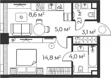 18 833 622 ₽1-к.квартира, 34.9 м², 2 эт.
