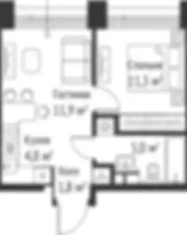 2-к.квартира, 38.3 м², 12 эт. в ЖК VEER Корпус 3
