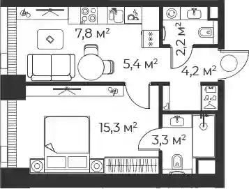 20 154 771 ₽2-к.квартира, 35.5 м², 3 эт.