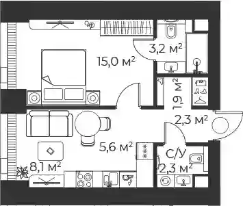 38.3 м2
