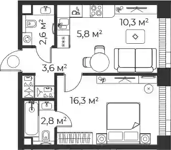20 775 216 ₽2-к.квартира, 43.2 м², 2 эт.