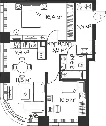 21 031 550 ₽2-к.квартира, 54.5 м², 18 эт.