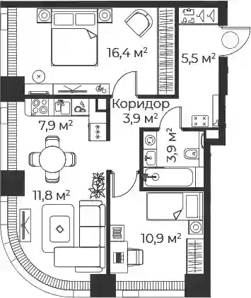 3-к.квартира, 60.3 м², 42 эт. в ЖК VEER Корпус 3