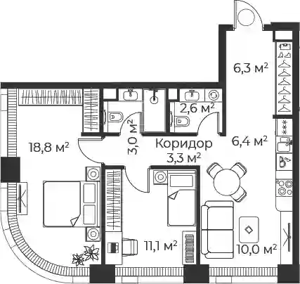 3-к.квартира, 61.3 м², 52 эт. в ЖК VEER Корпус 3