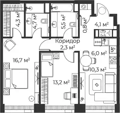 Квартиры в ЖК представлены классическими планировками от студий до трёхкомнатных. Есть возможность выбрать квартиру без отделки, с подчистовой и чистовой отделкой.
