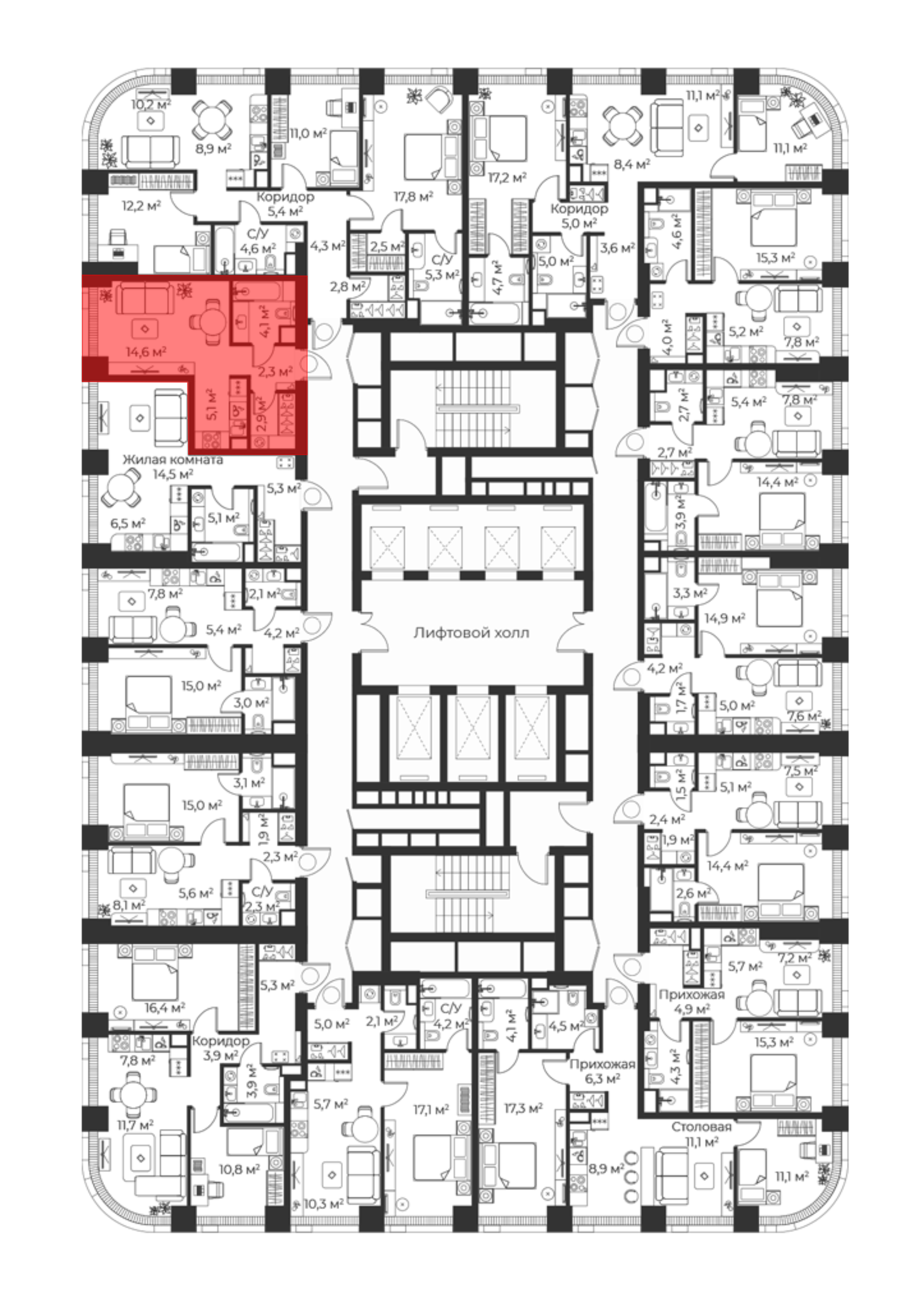 17 446 614 ₽Студия, 29 м², 14 эт.
