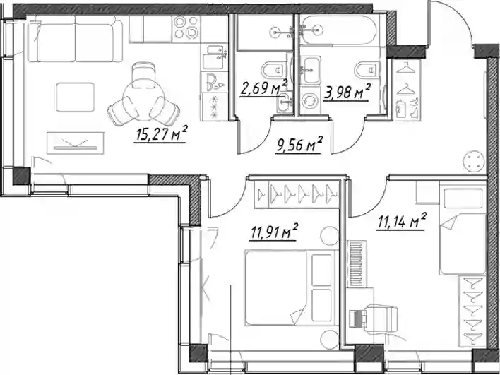 26 312 600 ₽2-к.квартира, 54.5 м², 15 эт.