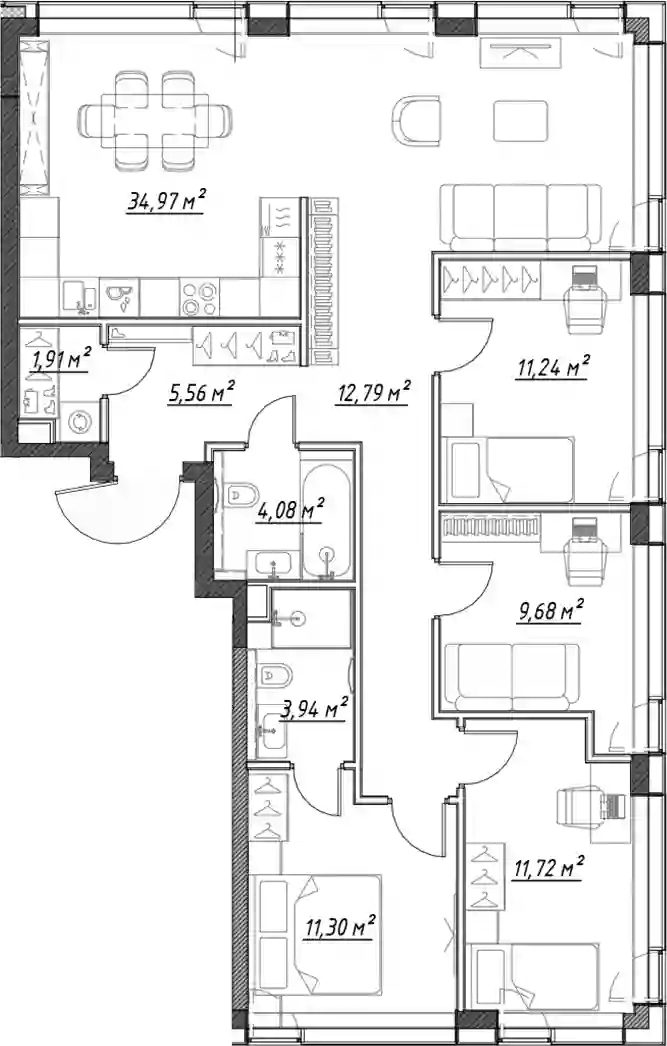 Планировочные решения включают как классические форматы, так и европланировки. Квартиры сдаются без отделки, с потолками высотой 3,1 метра и увеличенной площадью остекления. В некоторых квартирах предусмотрены просторные террасы.