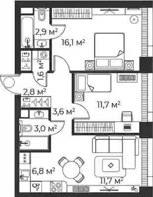 В комплексе предложено множество планировочных решений: в наличии квартиры, как классического типа, так и европланировки. Квартиры сдаются с подчистовой отделкой, высотой потолков 3 м и панорамным остеклением в пол.
