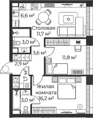 26 636 631 ₽3-к.квартира, 59.7 м², 2 эт.