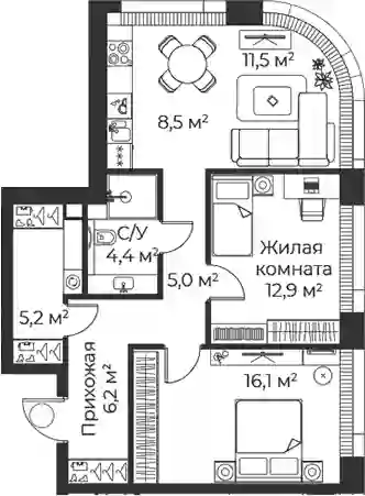 Квартиры в ЖК представлены классическими планировками от студий до трёхкомнатных. Есть возможность выбрать квартиру без отделки, с подчистовой и чистовой отделкой.