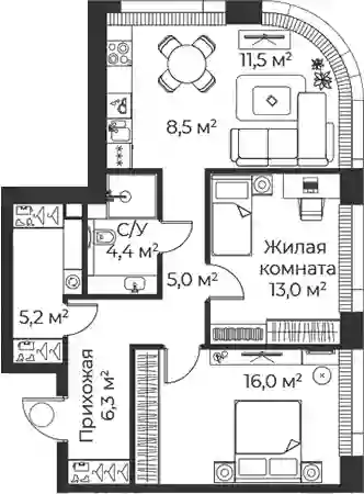 Квартиры в ЖК представлены классическими планировками от студий до трёхкомнатных. Есть возможность выбрать квартиру без отделки, с подчистовой и чистовой отделкой.