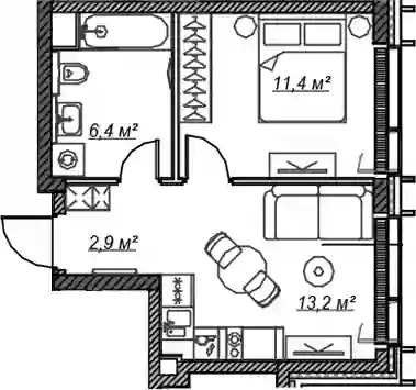 Квартиры в ЖК представлены классическими планировками от студий до трёхкомнатных. Есть возможность выбрать квартиру без отделки, с подчистовой и чистовой отделкой.