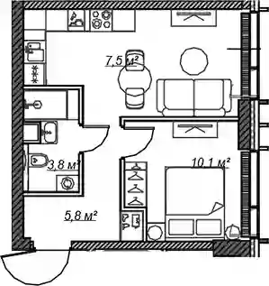 20 181 806 ₽2-к.квартира, 38.07 м², 12 эт.