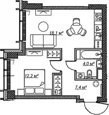 22 491 244 ₽2-к.квартира, 38.4 м², 18 эт.