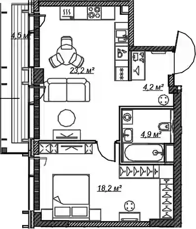 26 394 540 ₽2-к.квартира, 45.8 м², 15 эт.