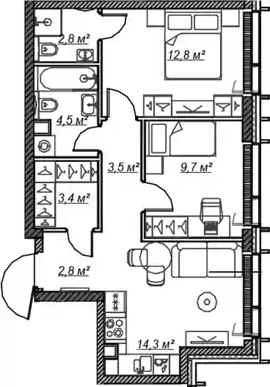 26 312 600 ₽2-к.квартира, 54.5 м², 15 эт.
