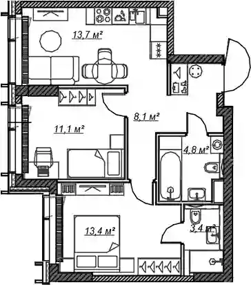 Квартиры в ЖК представлены классическими планировками от студий до трёхкомнатных. Есть возможность выбрать квартиру без отделки, с подчистовой и чистовой отделкой.