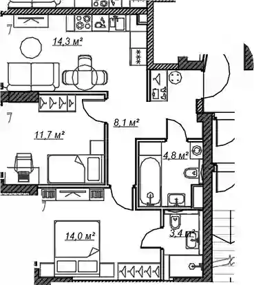27 466 302 ₽3-к.квартира, 56.1 м², 7 эт.