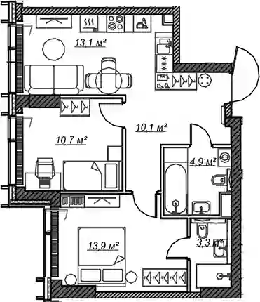 В проекте предложено более 200 уникальных планировочных решений, разработанных с учетом розничных сценариев жизни. Планировками предусмотрено разделение пространства на общую и частную зоны. Уникальные форматы включают в себя лоты с террасами, мастер-спальнями, дополнительными построчными комнатами и кладовыми при кухне. Все квартиры сдаются с отделкой White Box. Из панорамных окон квартир открываются виды на парк «Долина реки Сетунь» и центр Москвы.