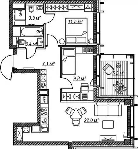 34 683 331 ₽3-к.квартира, 57.85 м², 12 эт.
