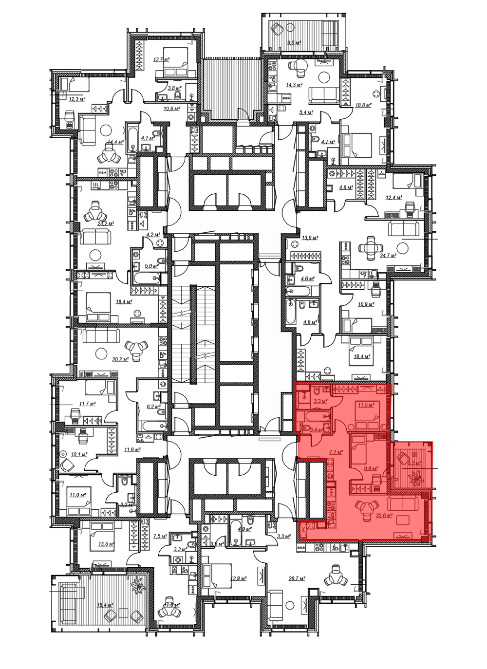В проекте предложено более 200 уникальных планировочных решений, разработанных с учетом розничных сценариев жизни. Планировками предусмотрено разделение пространства на общую и частную зоны. Уникальные форматы включают в себя лоты с террасами, мастер-спальнями, дополнительными построчными комнатами и кладовыми при кухне. Все квартиры сдаются с отделкой White Box. Из панорамных окон квартир открываются виды на парк «Долина реки Сетунь» и центр Москвы.