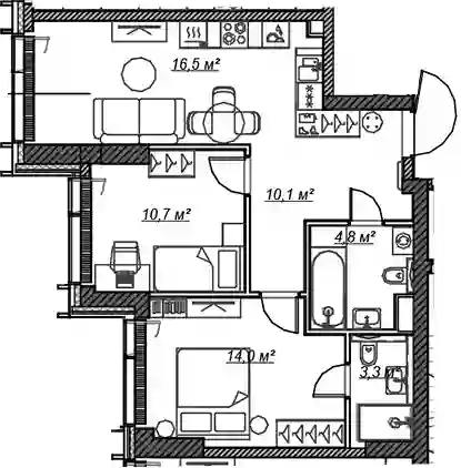 Квартиры в ЖК представлены классическими планировками от студий до трёхкомнатных. Есть возможность выбрать квартиру без отделки, с подчистовой и чистовой отделкой.