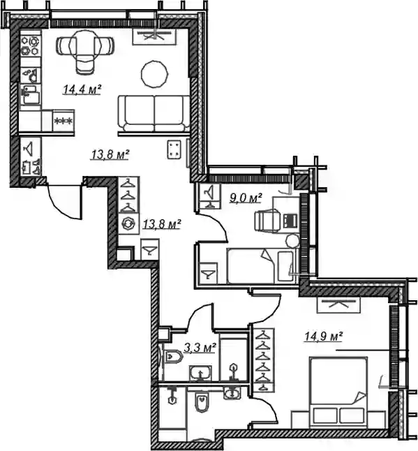 33 447 075 ₽3-к.квартира, 70.9 м², 6 эт.