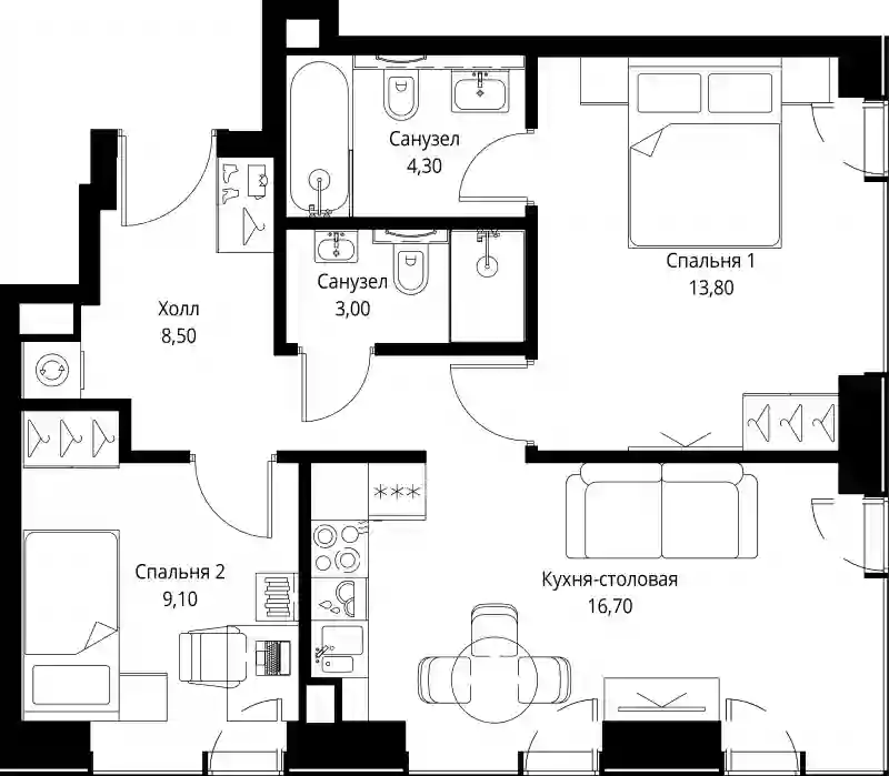 Планировочные решения включают как классические форматы, так и европланировки. Квартиры сдаются без отделки, с потолками высотой 3,1 метра и увеличенной площадью остекления. В некоторых квартирах предусмотрены просторные террасы.