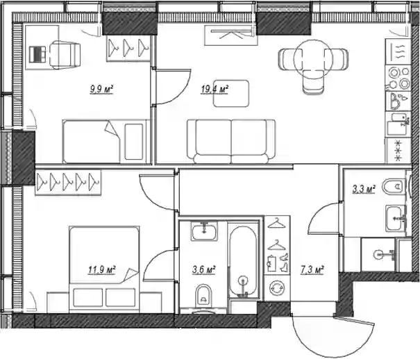 Планировочные решения включают как классические форматы, так и европланировки. Квартиры сдаются без отделки, с потолками высотой 3,1 метра и увеличенной площадью остекления. В некоторых квартирах предусмотрены просторные террасы.