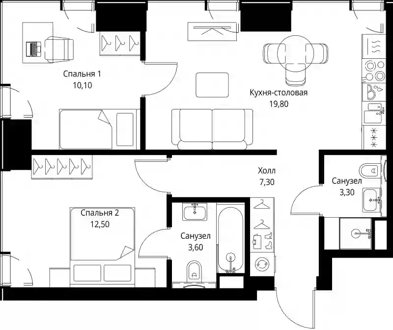 Планировочные решения включают как классические форматы, так и европланировки. Квартиры сдаются без отделки, с потолками высотой 3,1 метра и увеличенной площадью остекления. В некоторых квартирах предусмотрены просторные террасы.