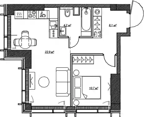 Планировочные решения включают как классические форматы, так и европланировки. Квартиры сдаются без отделки, с потолками высотой 3,1 метра и увеличенной площадью остекления. В некоторых квартирах предусмотрены просторные террасы.
