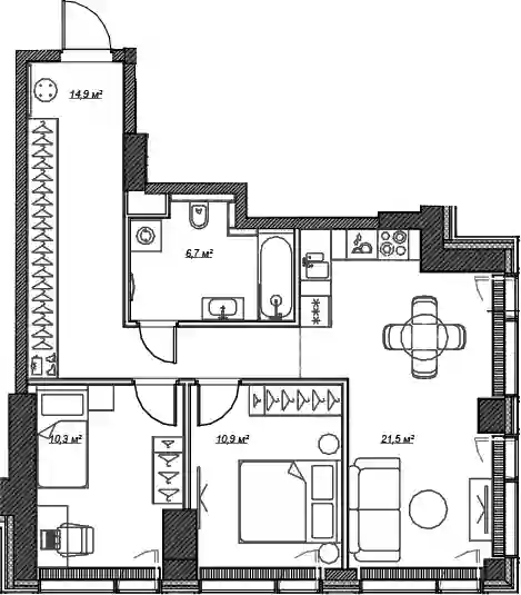 Планировочные решения включают как классические форматы, так и европланировки. Квартиры сдаются без отделки, с потолками высотой 3,1 метра и увеличенной площадью остекления. В некоторых квартирах предусмотрены просторные террасы.