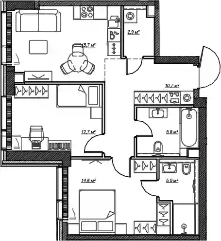 Планировочные решения включают как классические форматы, так и европланировки. Квартиры сдаются без отделки, с потолками высотой 3,1 метра и увеличенной площадью остекления. В некоторых квартирах предусмотрены просторные террасы.