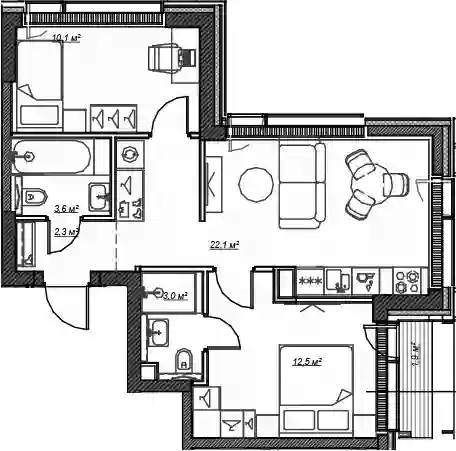 28 652 140 ₽3-к.квартира, 65.2 м², 12 эт.