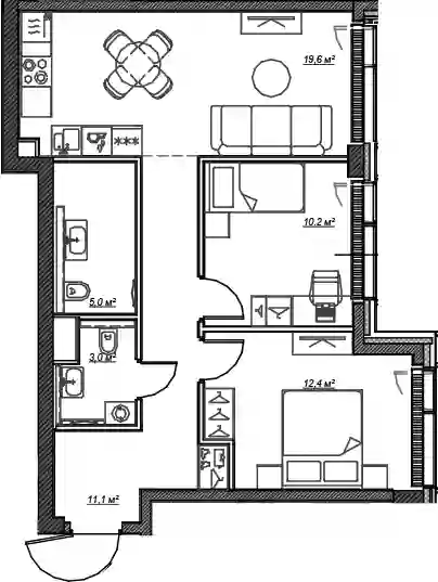 В комплексе предложено множество планировочных решений: в наличии квартиры, как классического типа, так и европланировки. Квартиры сдаются с подчистовой отделкой, высотой потолков 3 м и панорамным остеклением в пол.
