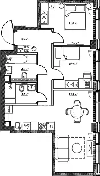 В комплексе предложено множество планировочных решений: в наличии квартиры, как классического типа, так и европланировки. Квартиры сдаются с подчистовой отделкой, высотой потолков 3 м и панорамным остеклением в пол.