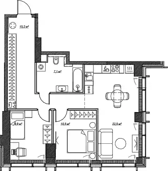 Планировочные решения включают как классические форматы, так и европланировки. Квартиры сдаются без отделки, с потолками высотой 3,1 метра и увеличенной площадью остекления. В некоторых квартирах предусмотрены просторные террасы.