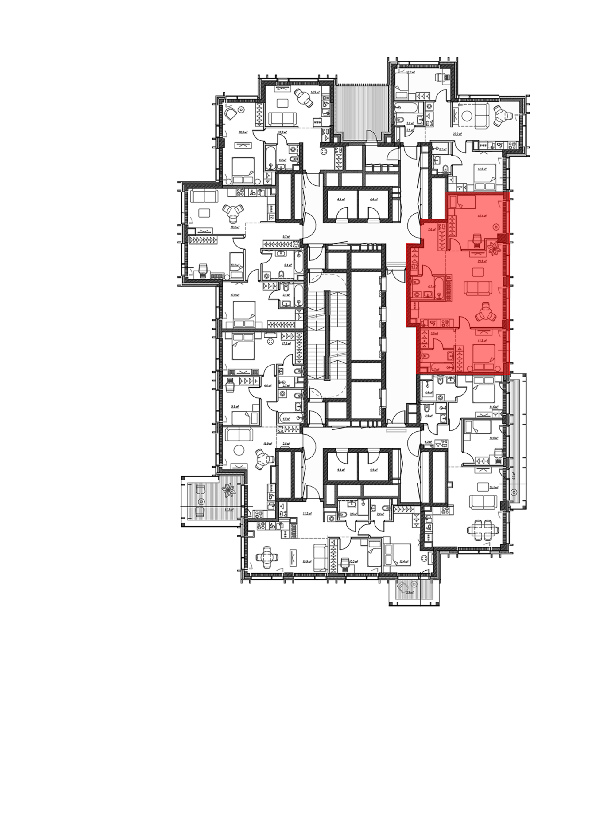 Планировочные решения включают как классические форматы, так и европланировки. Квартиры сдаются без отделки, с потолками высотой 3,1 метра и увеличенной площадью остекления. В некоторых квартирах предусмотрены просторные террасы.