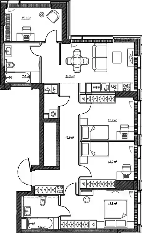 В комплексе предложено множество планировочных решений: в наличии квартиры, как классического типа, так и европланировки. Квартиры сдаются с подчистовой отделкой, высотой потолков 3 м и панорамным остеклением в пол.