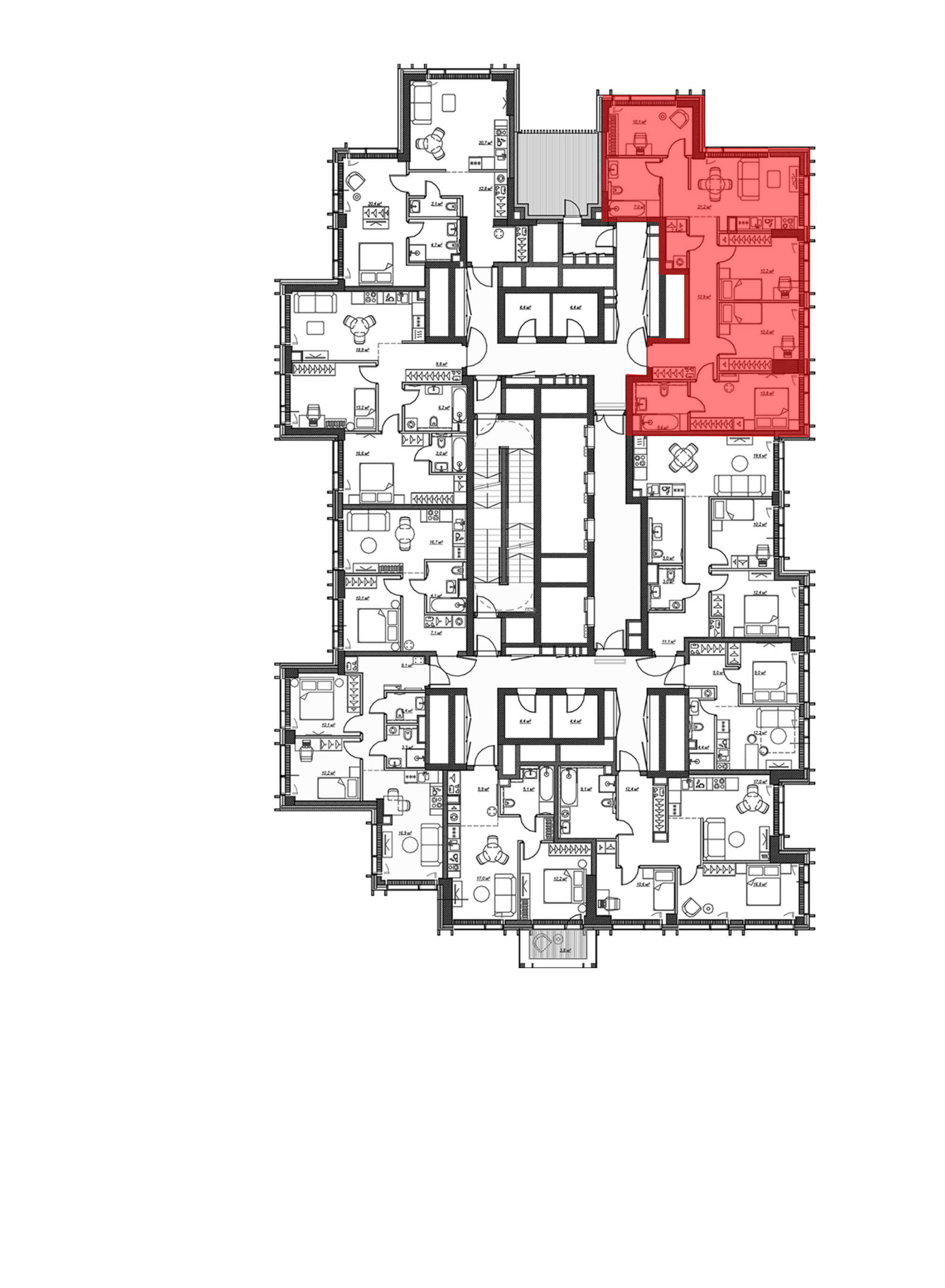 В комплексе предложен широкий выбор планировочных решений: от компактных студий площадью 22 кв. метра до просторных резиденций площадью 120 кв. метров. Планировками предусмотрены мастер-спальни с гардеробной и санузлом, просторные кухни-гостиные, гардеробные и системы хранения, выделенные рабочие зоны в спальнях и террасы с панорамным видом на город. Во всех квартирах панорамные окна и высокие потолки от 2,85 метра. Квартиры сдаются с отделкой White box.
