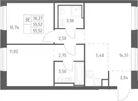 55.5 м2