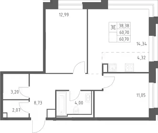 3-к.квартира, 60.7 м², 10 эт. в ЖК Верейская 41 Корпус 1