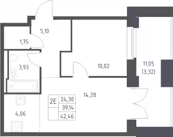 25 258 067 ₽2-к.квартира, 39.14 м², 1 эт.